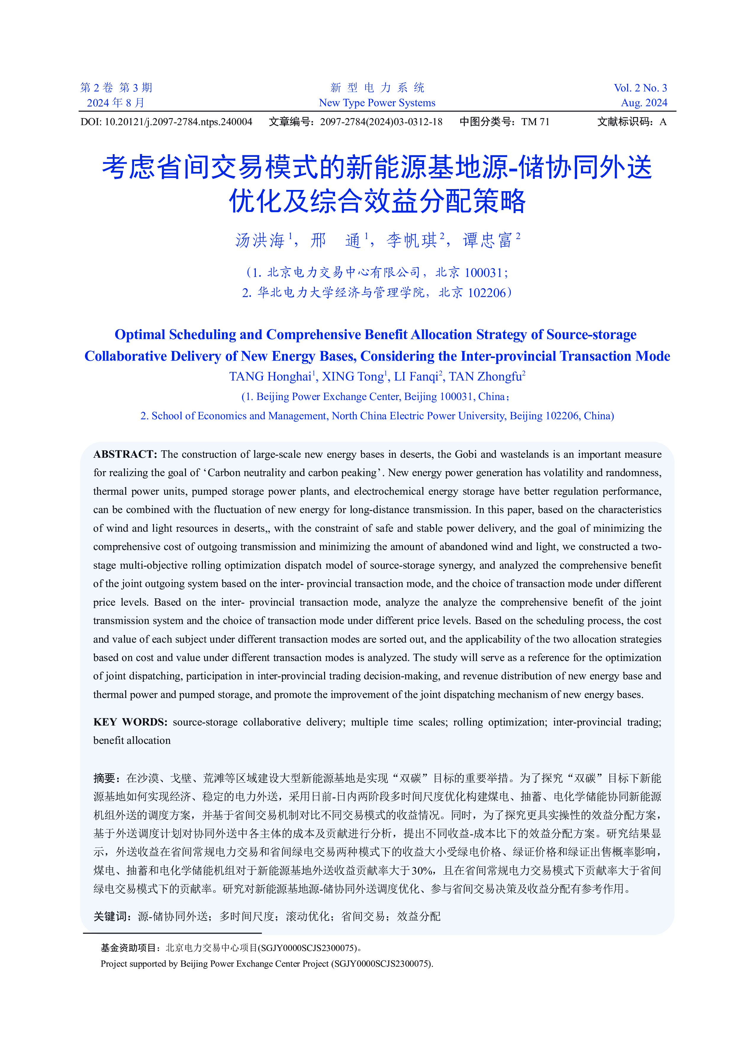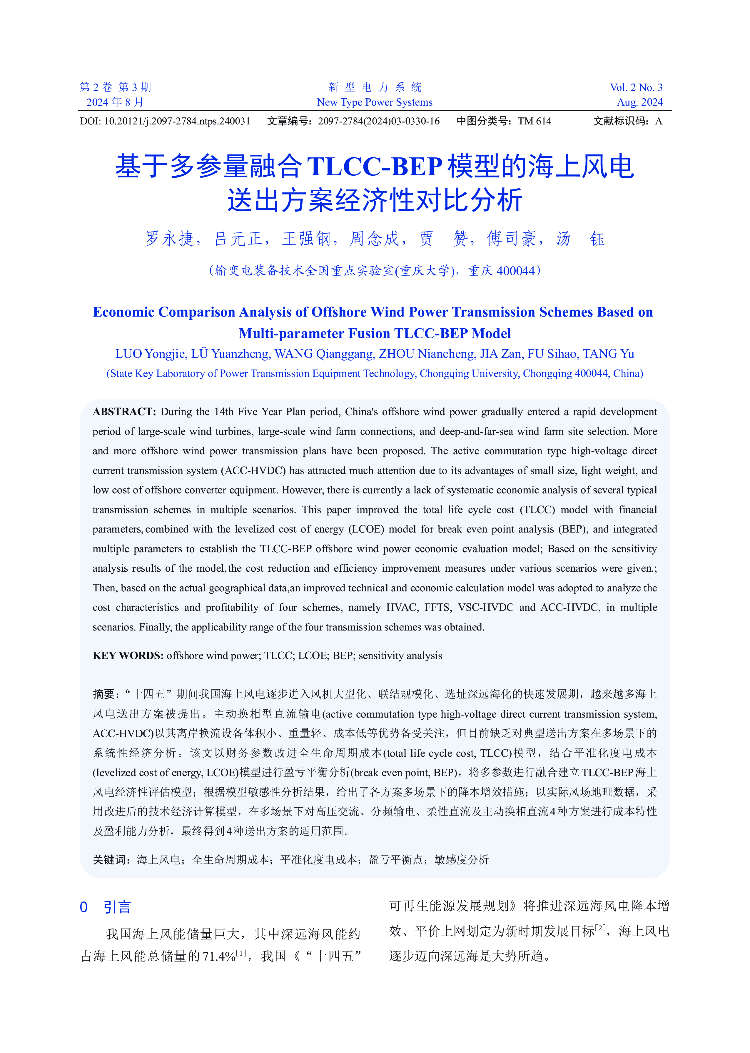 新型电力系统NewTypePowerSystemsVol.2No.3Aug.2024第2卷第3期2024年8月海上风电与电氢混合储能协同运行优化孙烨桦,吴杰康,詹耀国,罗伟明,洪明志,彭其坚,张勋祥,方梓康,谢明钊(广东工业大学自动化学院,广州510006)CooperativeOperationOptimizationofOffshoreWindPowerandHybridElectric-hydrogenEnergyStorageSUNYehua,WUJiekang,ZHANYaoguo,LUOWeiming,HONGMingzhi,PENGQijian,ZHANGXunxiang,FAN...