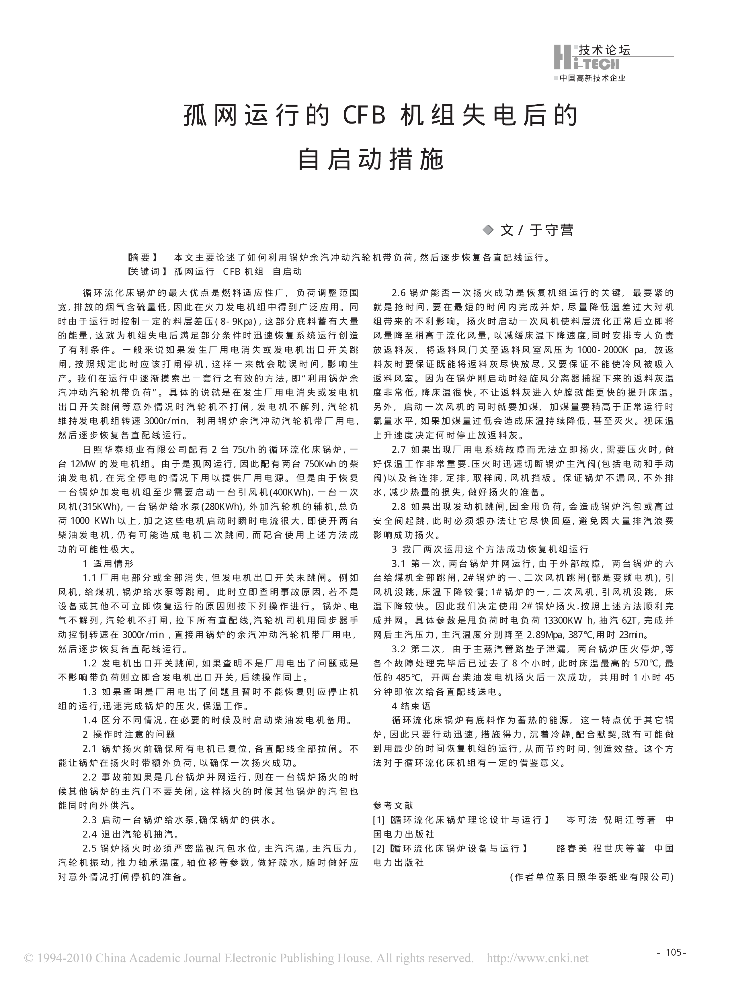 循环流化床锅炉供热机组甩负荷及其对电网快速恢复的意义