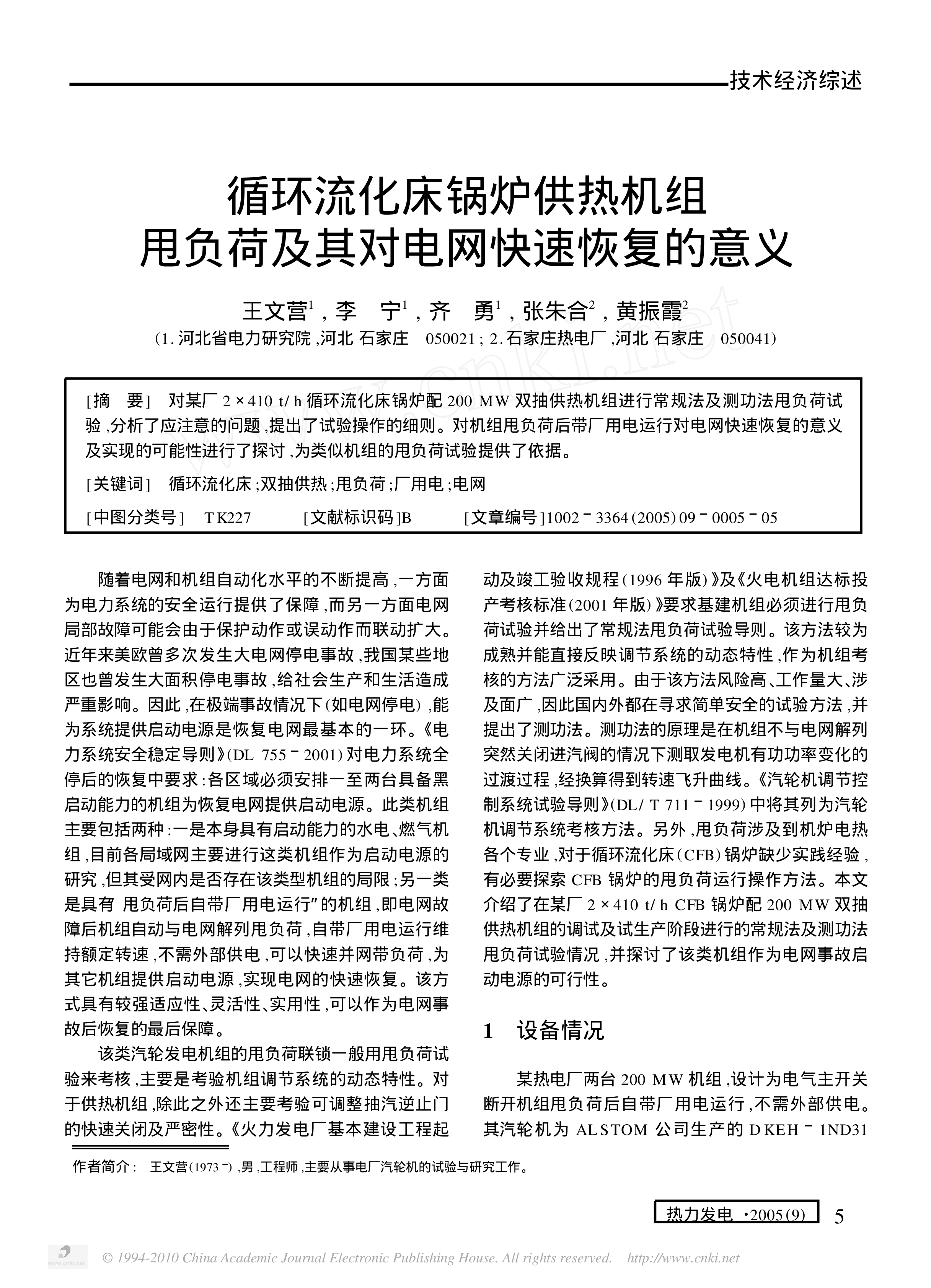 ©1994-2010ChinaAcademicJournalElectronicPublishingHouse.Allrightsreserved.http://www.cnki.netÈÈÁ¦·¢µç¡¤2005(9)5¡¡¡¡¡¡¡¡×÷Õß¼ò½é:¡¡ÍõÎÄӪ(1973),ÄÐ,¹¤³Ìʦ,Ö÷Ҫ´Óʵ糧ÆûÂÖ»úµÄÊÔÑéÓëÑо¿¹¤×÷¡£ѭ»·Á÷»¯´²¹ø¯¹©ÈÈ»ú×é˦¸ººÉ¼°Æä¶ÔµçÍø¿ìËÙ»Ö¸´µÄÒâÒåÍõÎÄӪ1,Àî¡¡Äþ1,Æë¡¡ÓÂ1,ÕÅÖìºÏ2,»ÆÕñϼ2(1.ºÓ±±ʡµçÁ¦Ñо¿Ժ,ºÓ±±ʯ¼Òׯ¡¡...